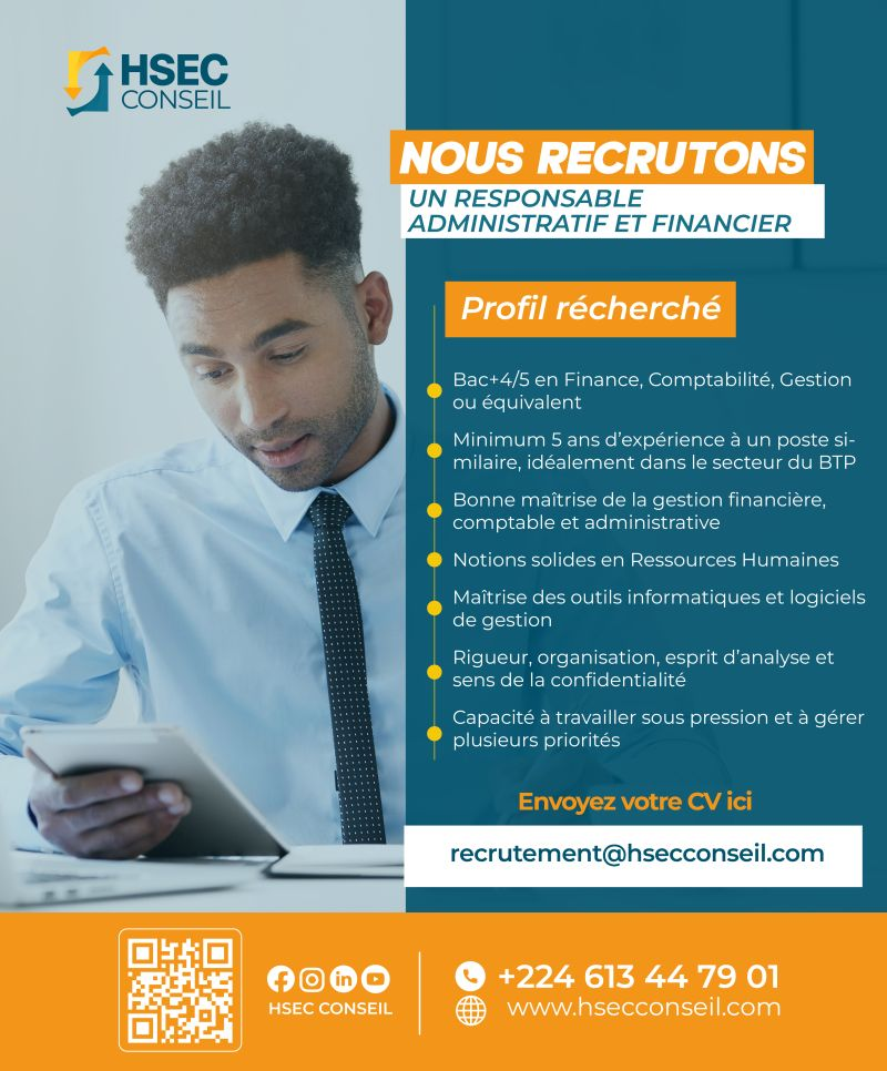 Vous maîtrisez la gestion administrative, financière et comptable, avez une bonne connaissance des obligations fiscales en Guinée et des notions solides en RH ? Ce poste est fait pour vous.