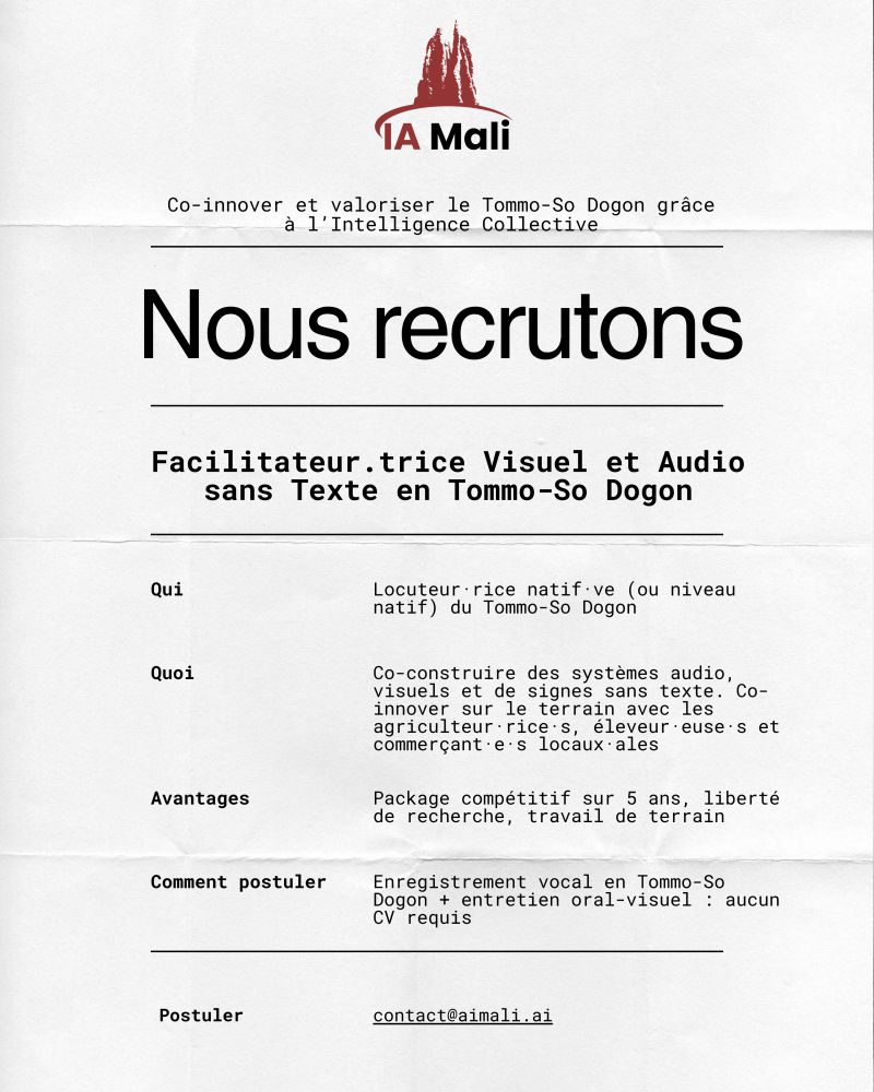IA Mali recrute : Facilitateur.trice Visuel et Audio sans Texte en Tommo-So Dogon