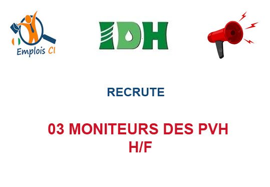 IDH RECRUTE 03 MONITEURS DES PVH H/F