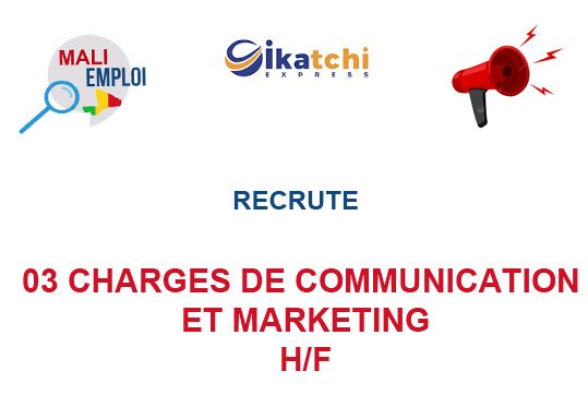 Dans le cadre du développement de nos activités, Ika Tchi Express recrute 3 chargé(e)s de communication marketing motivé(e)s et engagé(e)s, prêt(e)s à relever de nouveaux défis au sein d’un environnement stimulant et collaboratif.