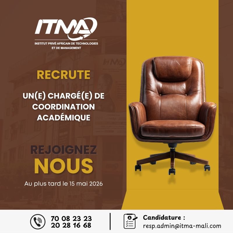 đź“© Envoyez votre CV et lettre de motivation Ă : resp.admin@itma-mali.com