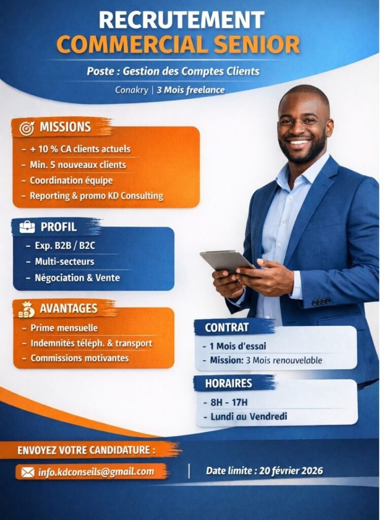 KD CONSULTING recrute un Commercial Senior – Conakry