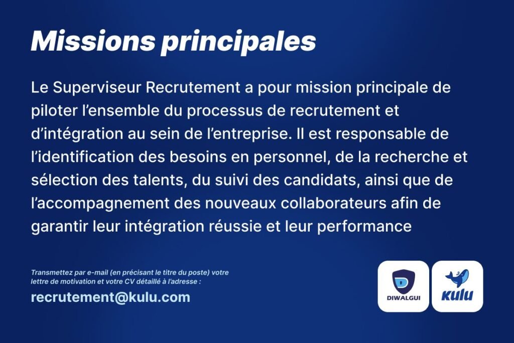 3 réflexions sur “KULU GUINEE RECRUTE SUPERVISEUR RECRUTEMENT H/F”