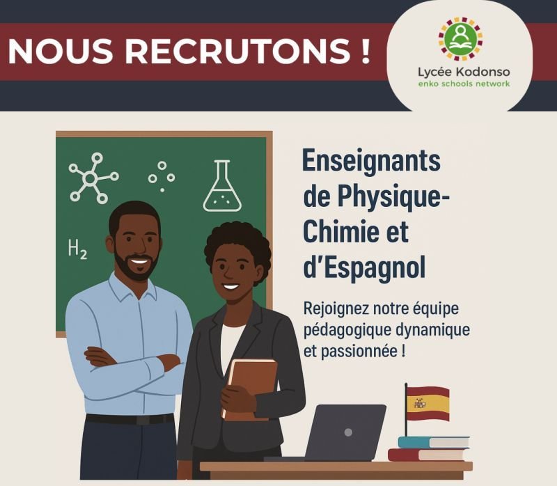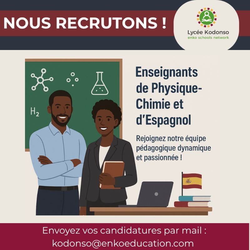 Candidatures ร envoyer exclusivement par mail ร : kodonso@enkoeducation.com