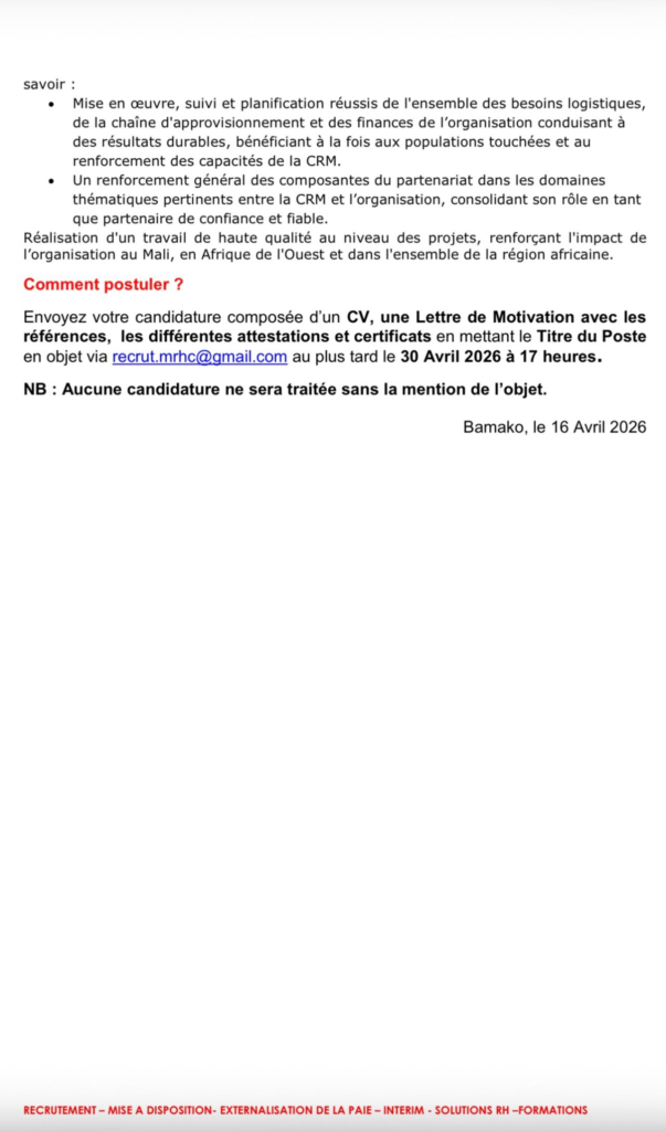 en objet via recrut.mrhc@gmail.com au plus tard le 30 Avril 2026 à 17 heures.