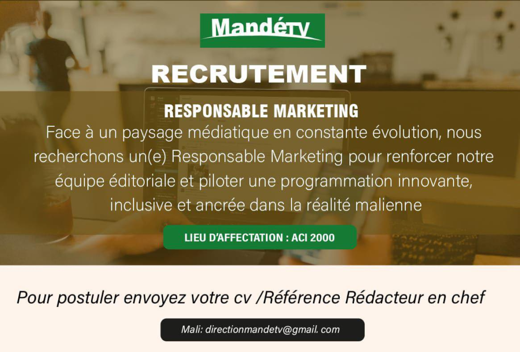 Face à un paysage médiatique en constante évolution, nous recherchons un(e) Responsable Marketing pour renforcer notre équipe et piloter une stratégie innovante, inclusive et ancrée dans la réalité malienne.