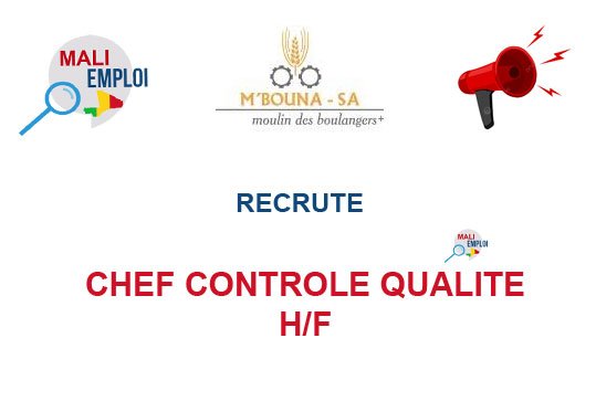 M’BOUNA RECRUTE CHEF DE CONTROLE QUALITE H/F