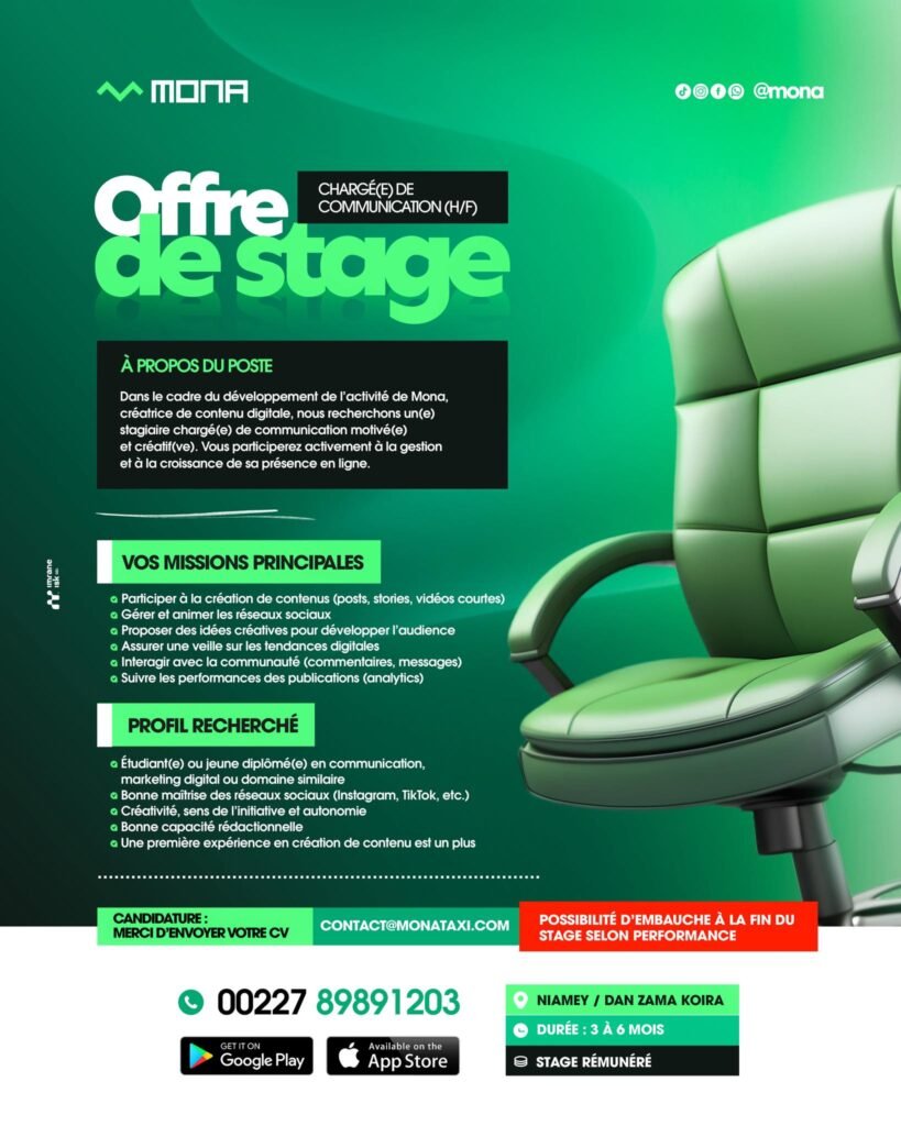 Dans le cadre du développement de ses activités digitales, Mona recrute un(e) stagiaire Chargé(e) de Communication Digitale motivé(e) et créatif(ve).