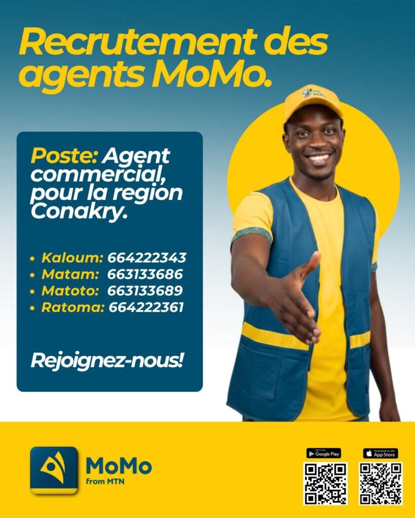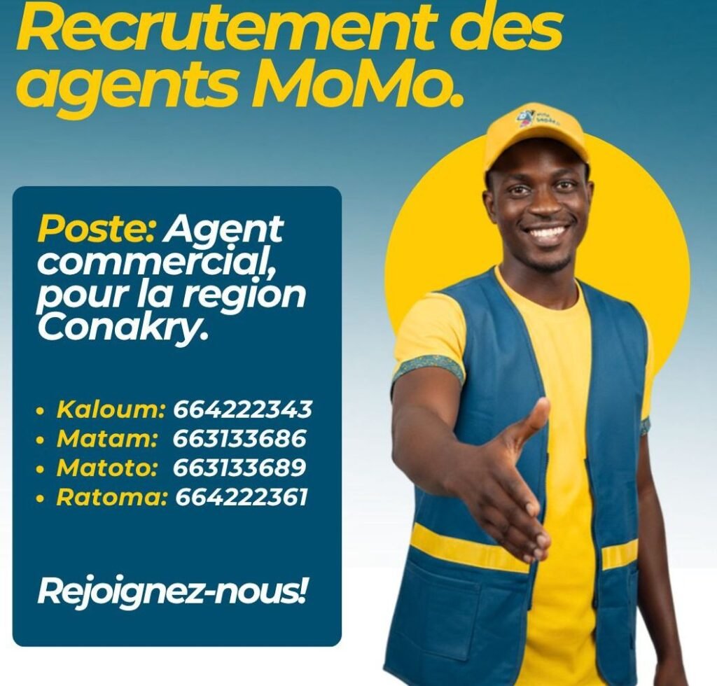 MTN GUINEE RECRUTE DES AGENTS MOMO