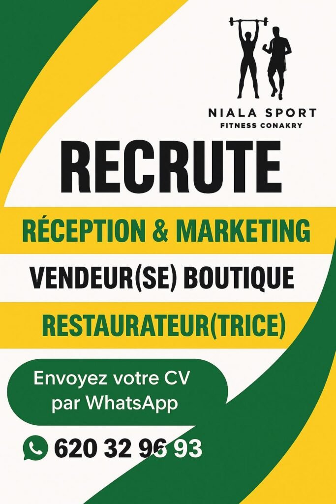 Rejoins notre équipe chez Niala Sport – Fitness Conakry !