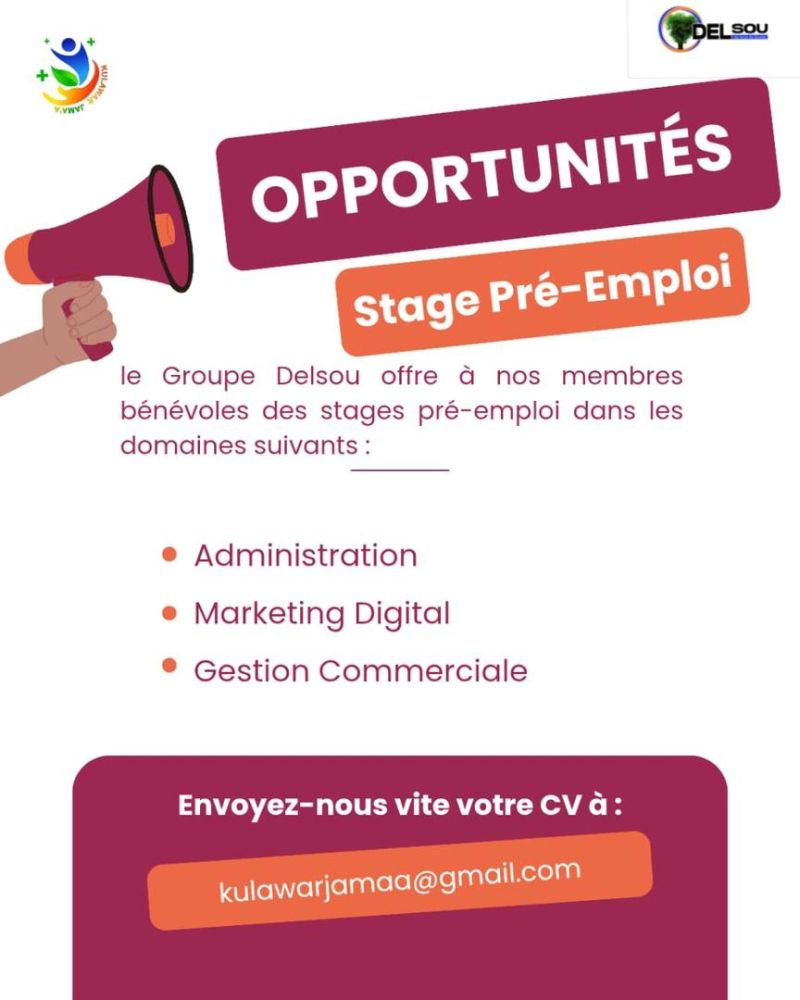 📢 Opportunité de stage pré-emploi pour les bénévoles de Kulawar Jama’a