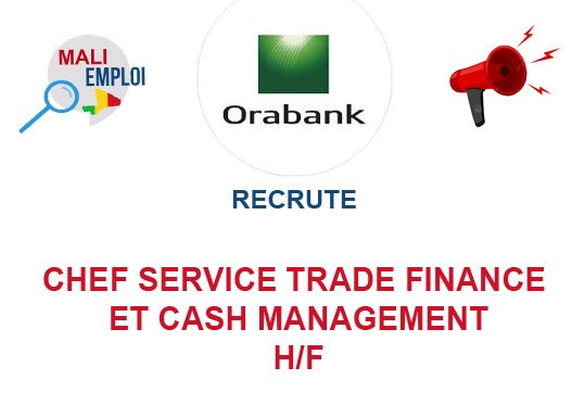 La Succursale du Mali recherche actuellement Un Chef service Trade Finance et Cash management.