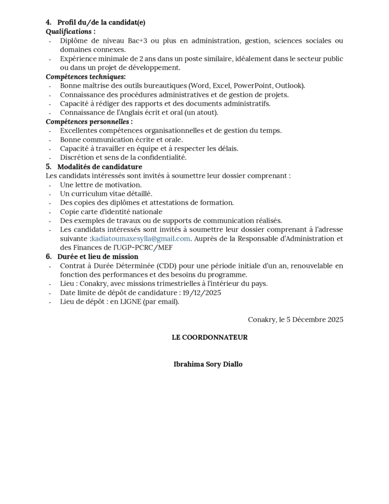suivante :kadiatoumaxesylla@gmail.com. Auprès de la Responsable d’Administration