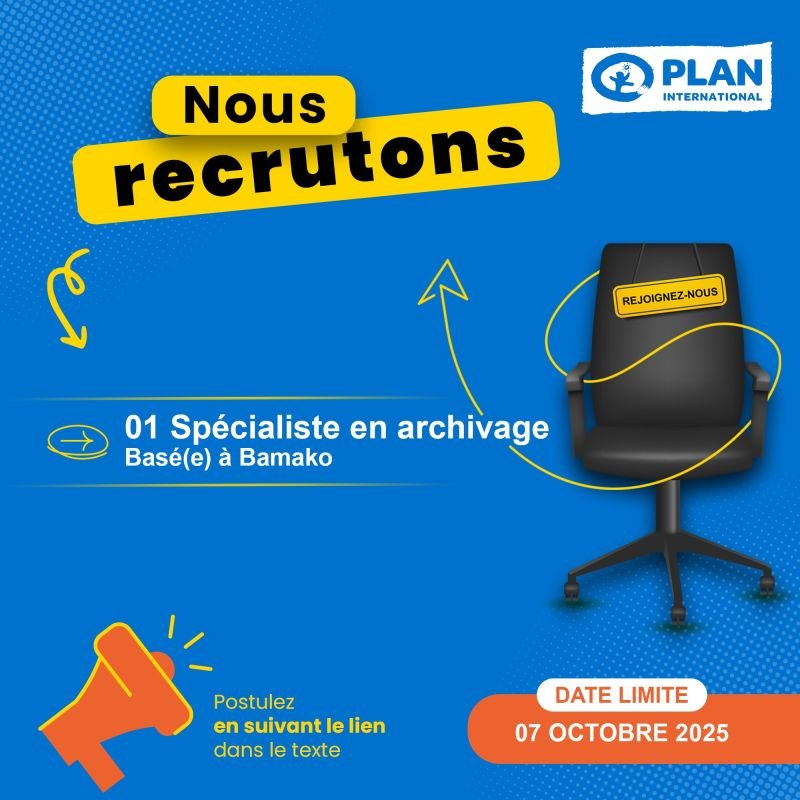 PLAN INTERNATIONAL MALI RECRUTE SPECIALISTE EN ARCHIVAGE H/F