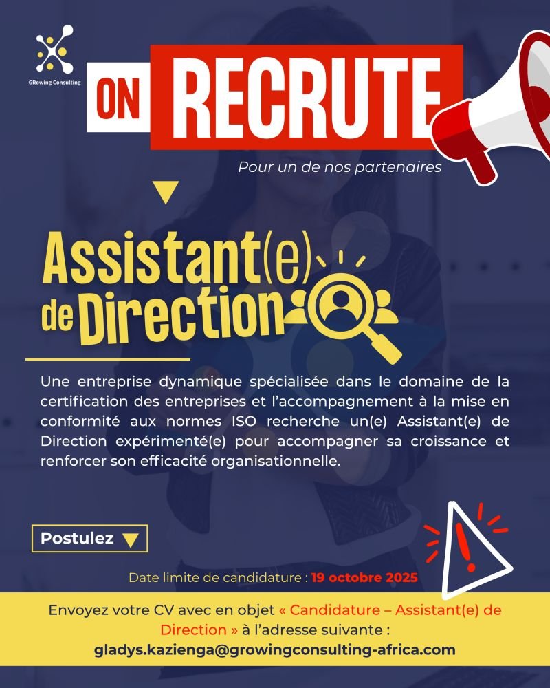 Merci dâenvoyer votre CV avec en objet « Candidature â Assistant(e) de Direction » Ă lâadresse suivante :