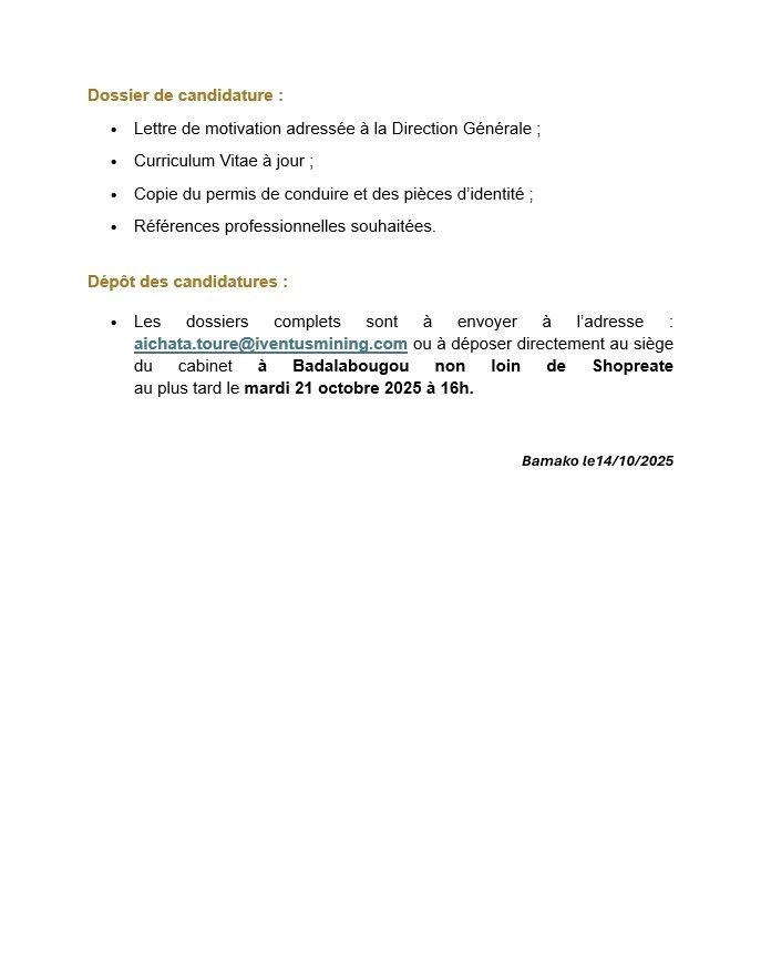 Envoyez votre dossier à : aichata.toure@iventusmining.com