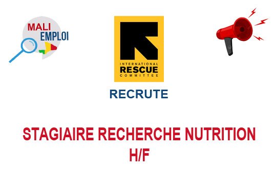 Lien :  https://theirc.wd1.myworkdayjobs.com/External_Careers/job/Bamako-Mali/Stagiaire-Recherche-Nutrition_JR00003062