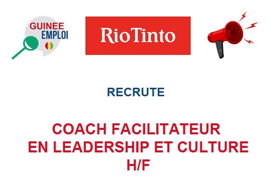 RIO TINTO RECRUTE COACH FACILITATEUR EN LEADERSHIP ET CULTURE H/F