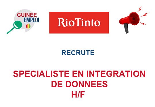 RIO TINTO RECRUTE SPECIALISTE EN INTEGRATION DE DONNEES H/F