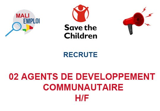 SAVE THE CHILDREN RECRUTE 02 AGENTS DE DEVELOPPEMENT COMMUNAUTAIRE H/F
