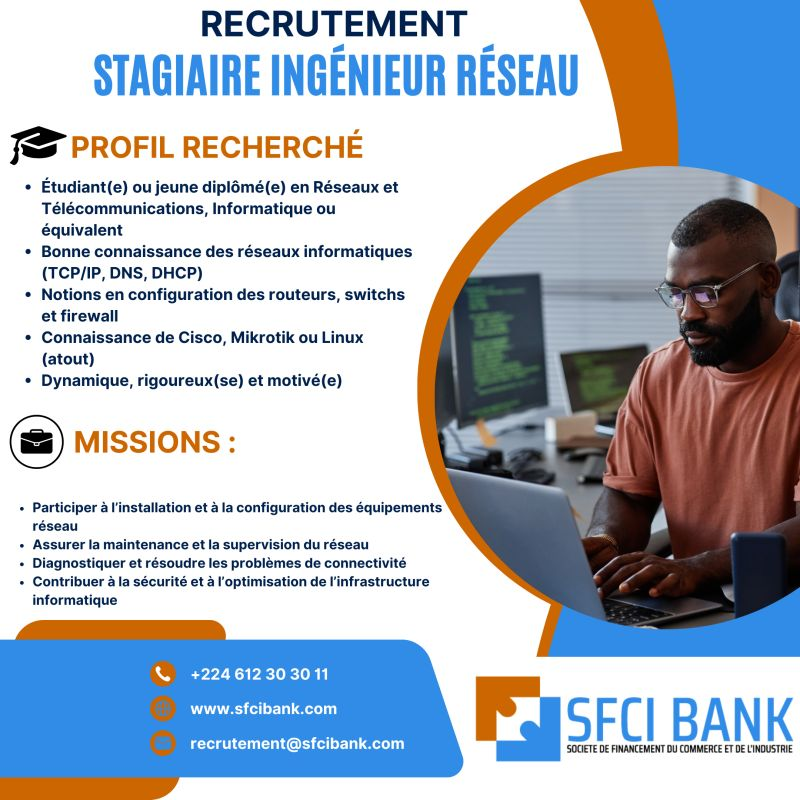 Dans le cadre du renforcement de son équipe technique,SFCI BANK recrute :