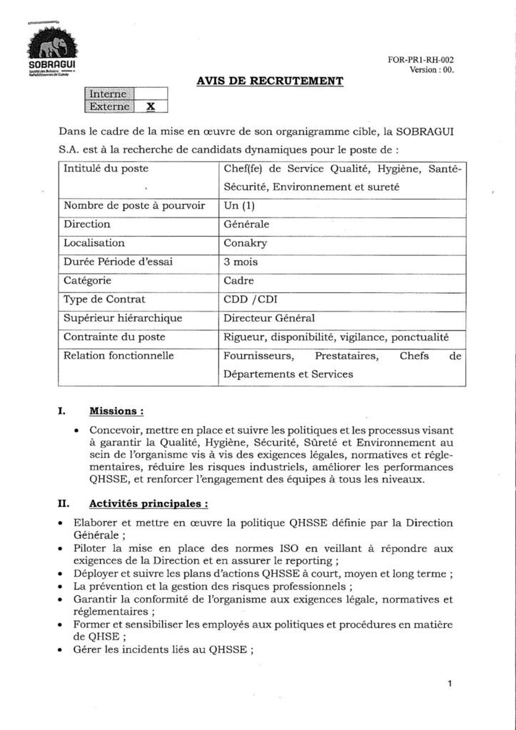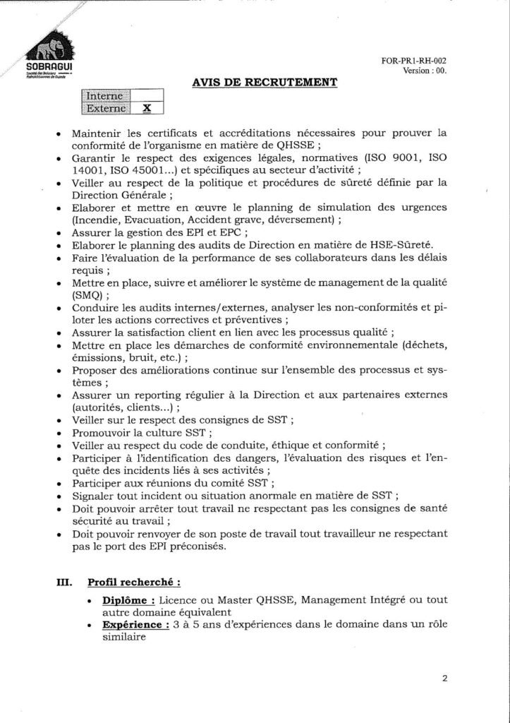 Dans le cadre de la mise en ลuvre de son organigramme cible, la SOBRAGUI