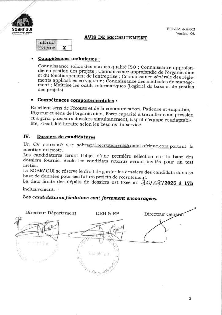 La SOBRAGUI se rรฉserve le droit de garder les dossiers des candidats dans sa