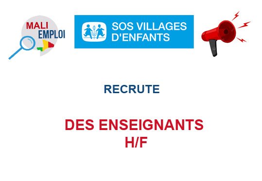Dans le but de renforcer son équipe afin de garantir une assurance qualité de ses interventions et une prise en charge efficace et efficiente des enfants et jeunes, SOS Villages d’Enfants au Mali recherche pour l’EHG (l’Ecole Hermann Gmeiner) du programme de Sanankoroba, de Kita et Socoura/Mopti les postes suivants :