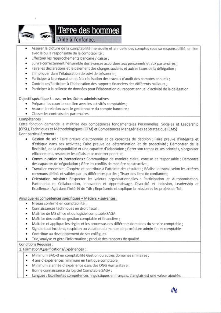 Dans le cadre de la mise en œuvre d’un de ses projets, Terre des hommes recherche un(e) Comptable.