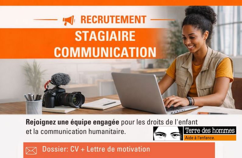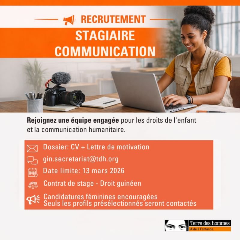 📢 Terre des hommes Guinée recrute un(e) Stagiaire Communication