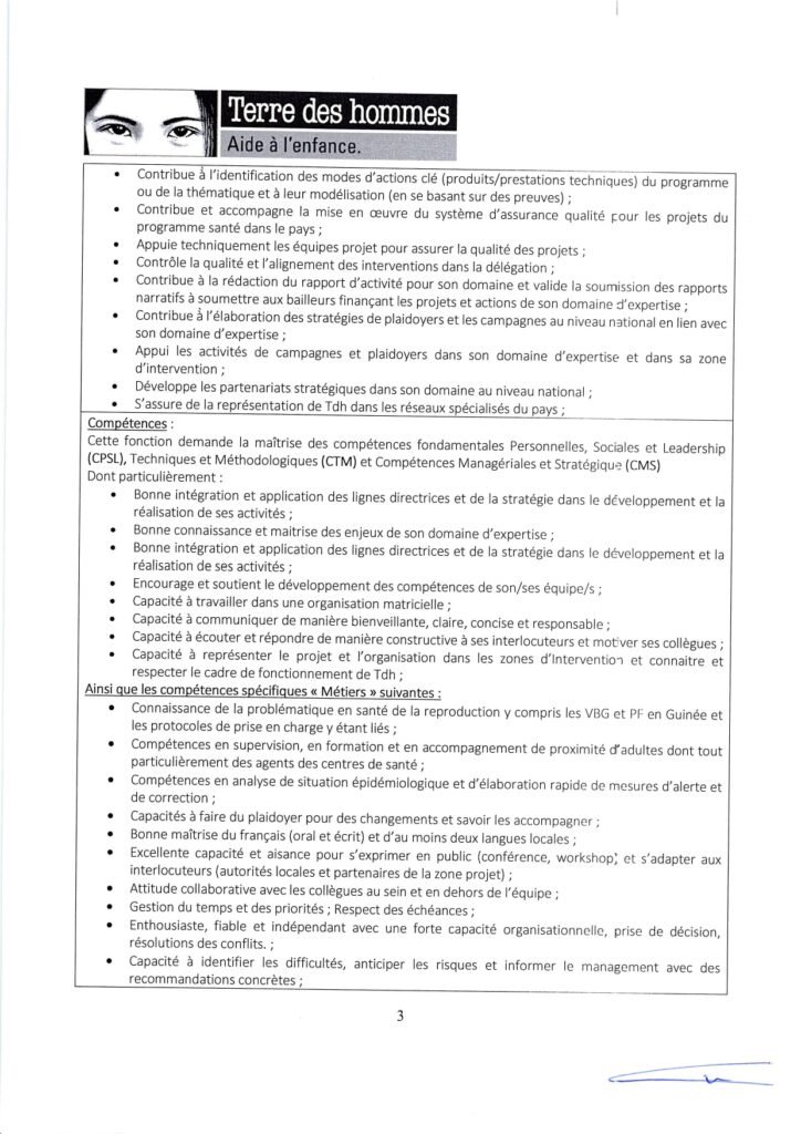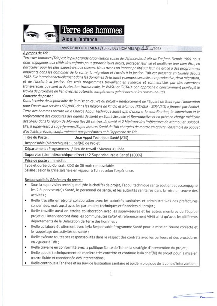 AVIS DE RECRUTEMENT /TERRE DES HOMMES/…../2025