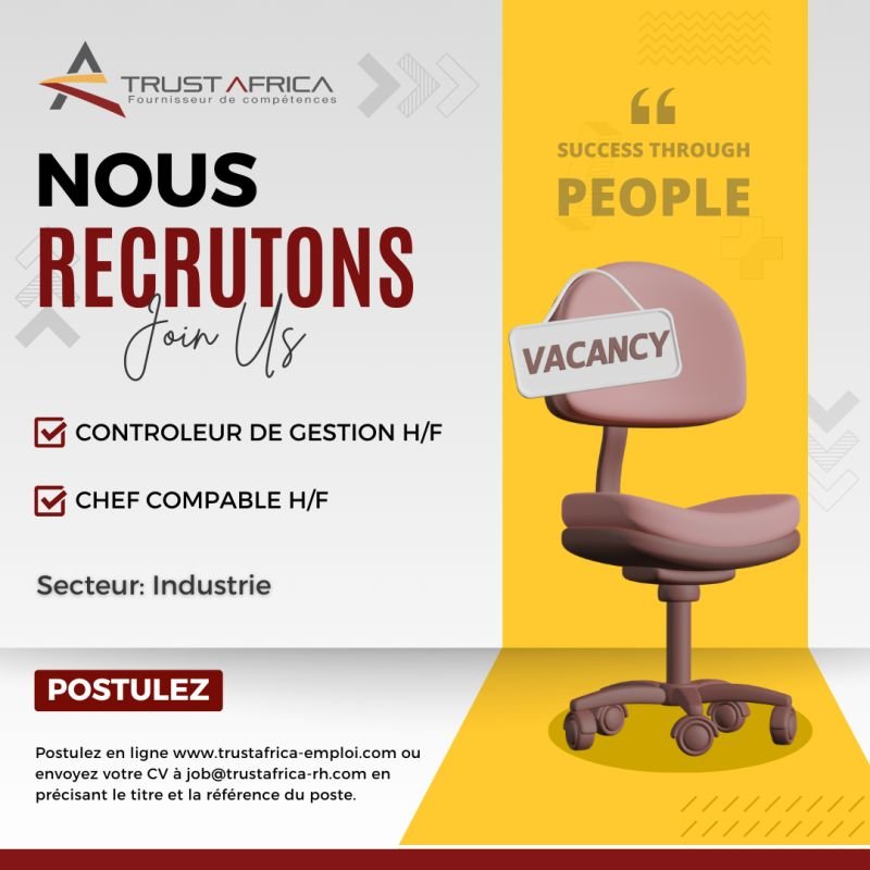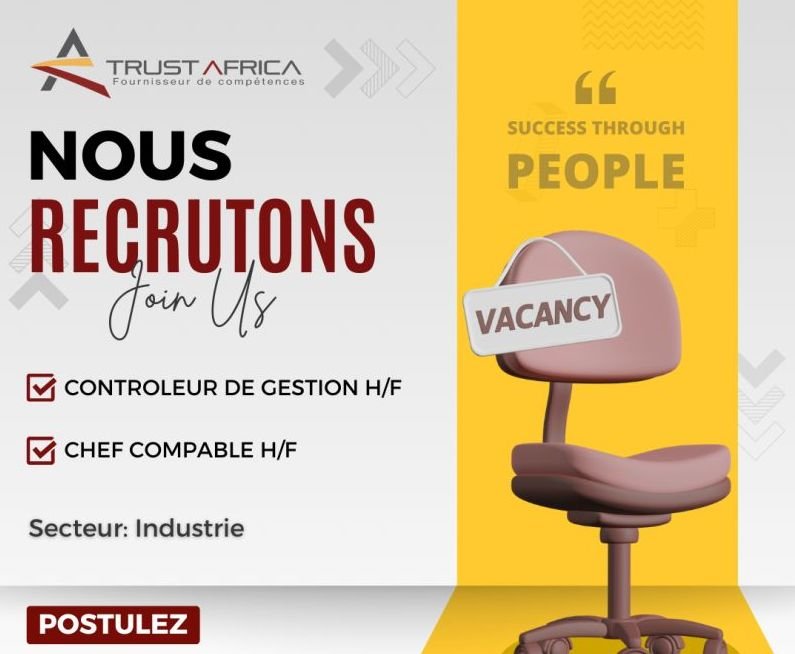 đ© Postulez dĂšs maintenant en cliquant sur le lien ou en envoyant votre CV Ă job@trustafrica-rh.com en indiquant clairement le titre et la rĂ©fĂ©rence du poste en objet.