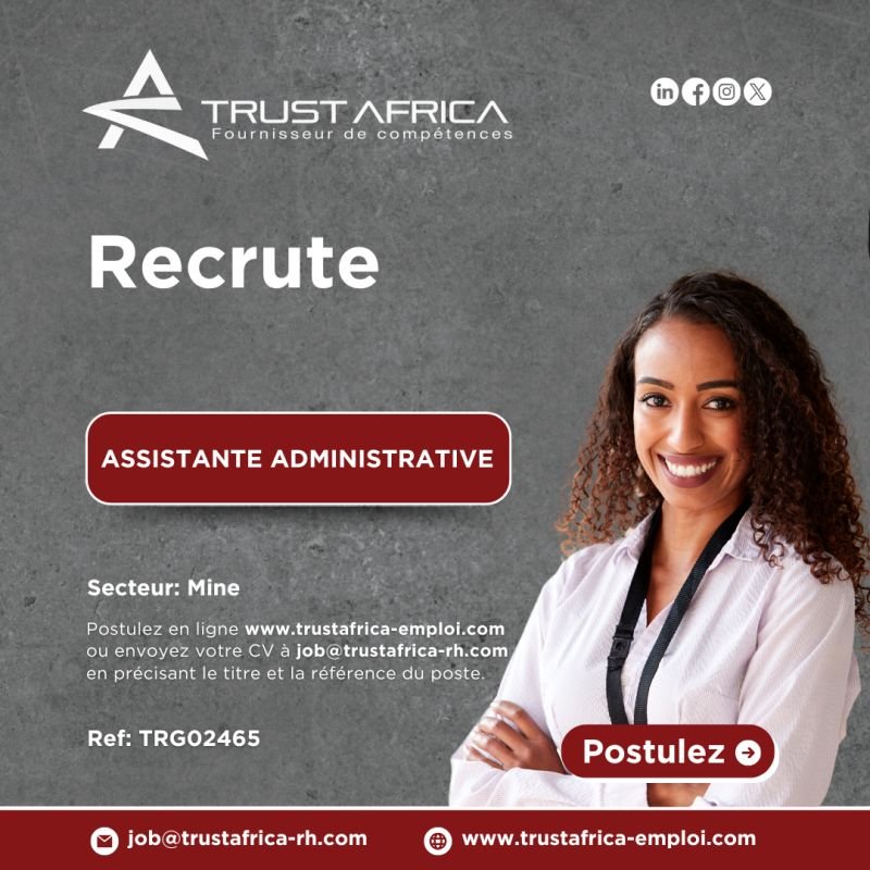 TRUST AFRICA recrute une ๐€๐ฌ๐ฌ๐ข๐ฌ๐ญ๐š๐ง๐ญ๐ž ๐€๐๐ฆ๐ข๐ง๐ข๐ฌ๐ญ๐ซ๐š๐ญ๐ข๐ฏ๐ž (๐‡/๐…)