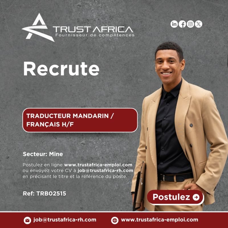📧 Postulez dès maintenant en cliquant sur le lien ou en envoyant votre CV à job@trustafrica-rh.com en indiquant clairement le titre et la référence du poste en objet.