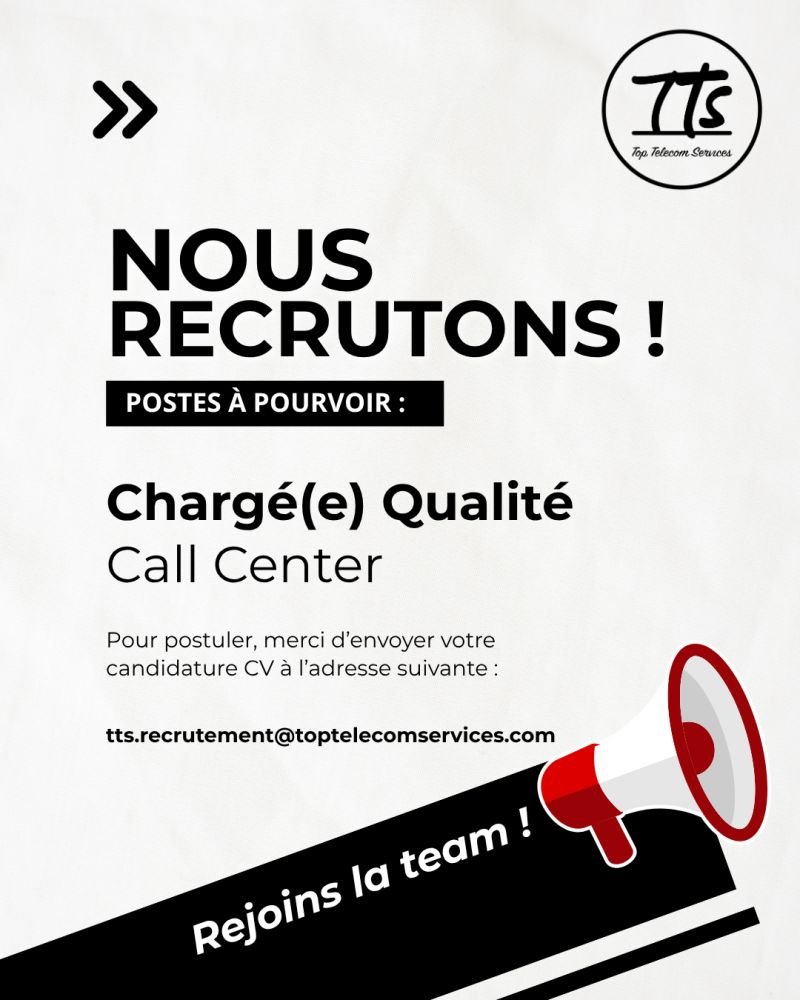 Pour postuler, merci d’envoyer votre candidature CV à l’adresse suivante : tts.recrutement@toptelecomservices.com