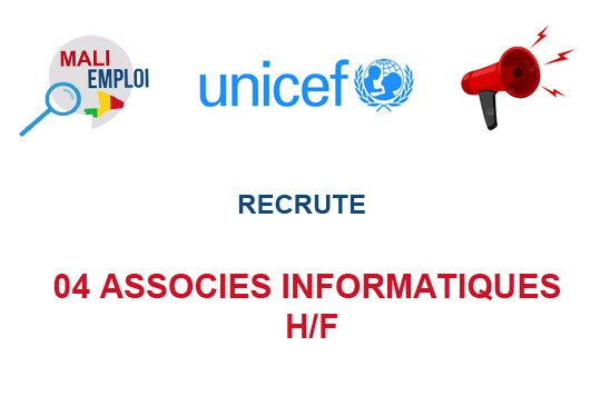 UNICEF MALI RECRUTE 04 ASSOCIES INFORMATIQUES H/F
