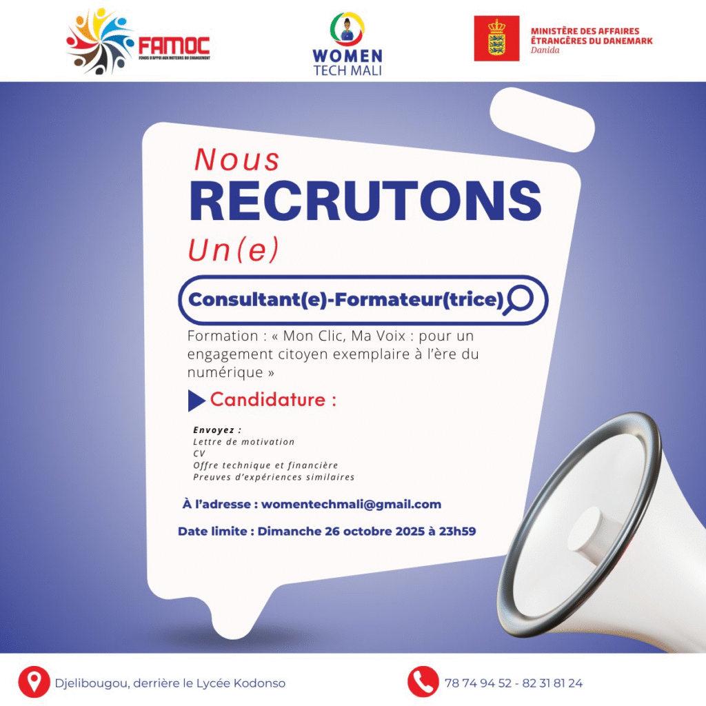 civique, participation citoyenne ou transformation numérique ; - Avoir une bonne connaissance du contexte socio-politique malien ;
